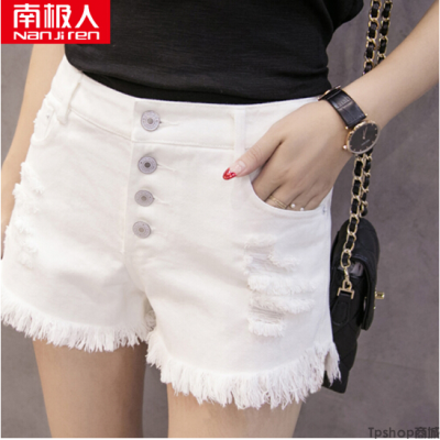 商品名称:南极人 牛仔短裤女2018夏季新款韩版高腰排扣宽松破洞毛边阔腿裤弹力显瘦热裤JBD922
