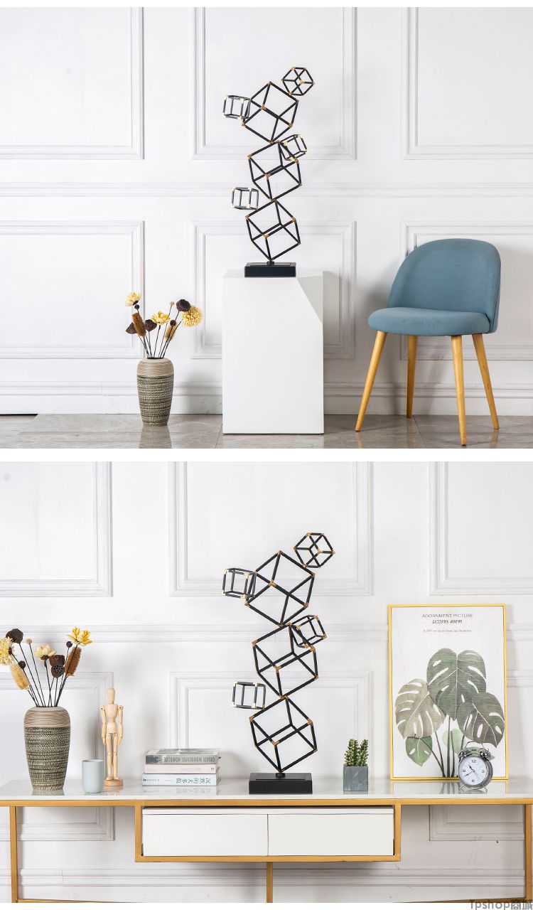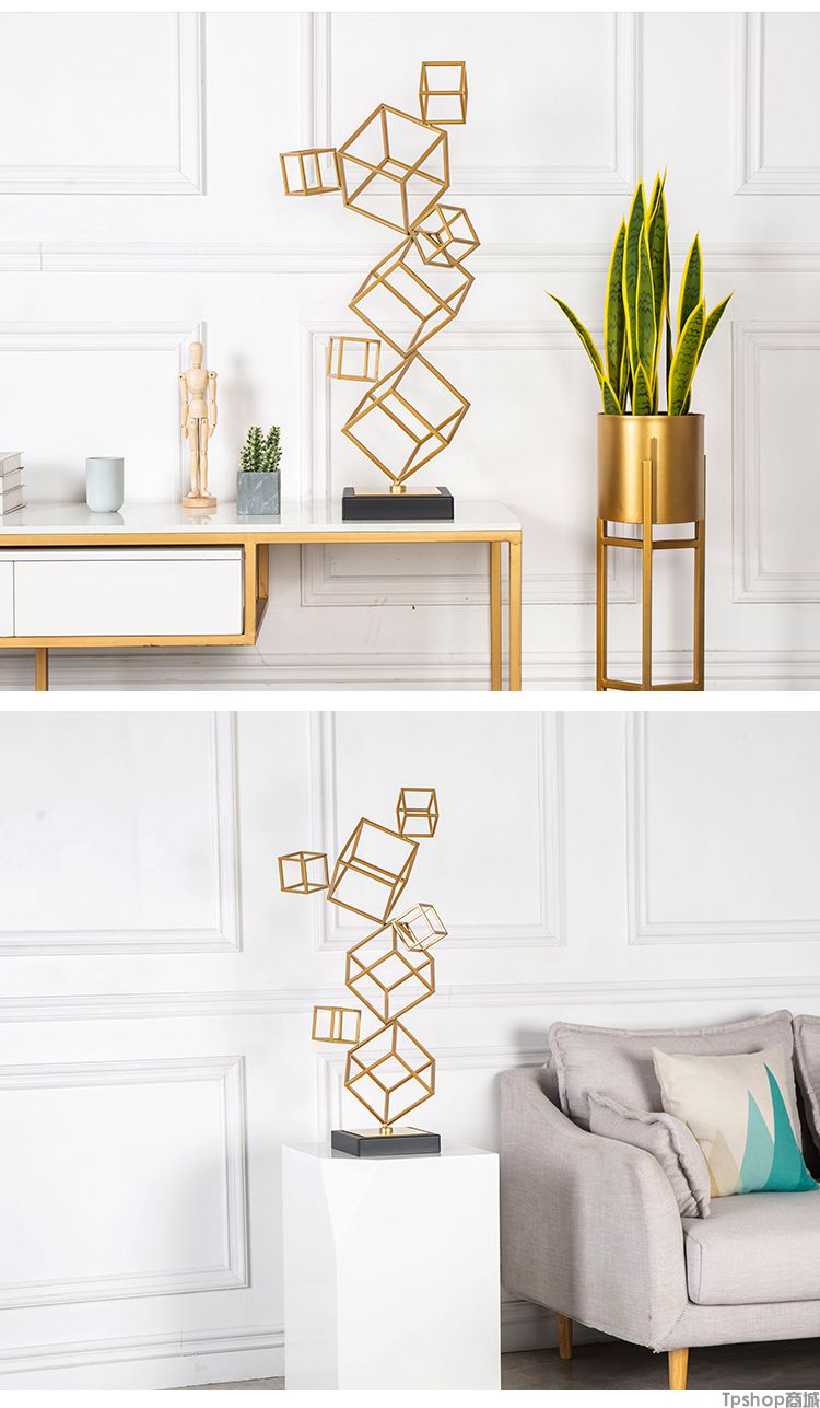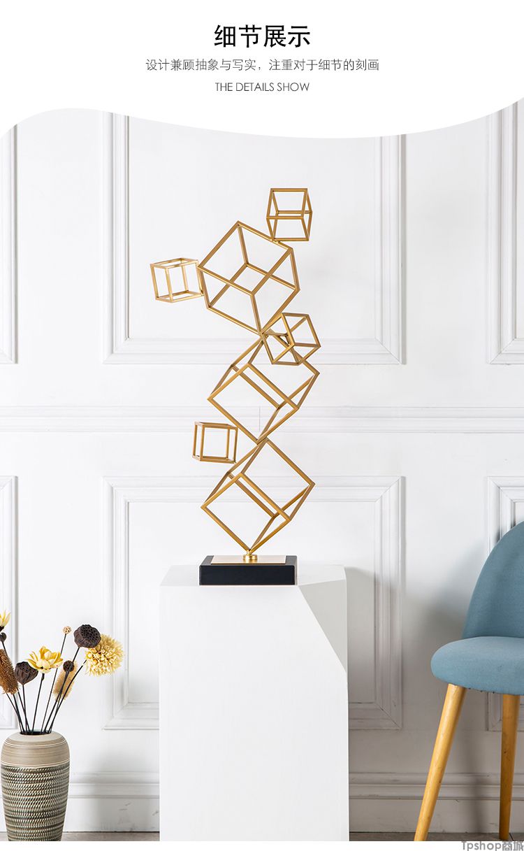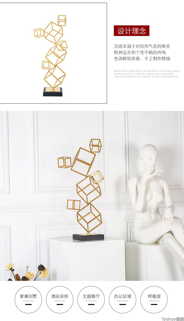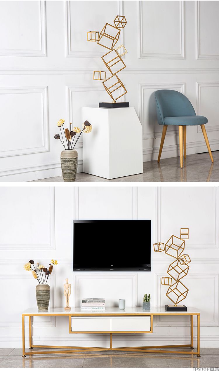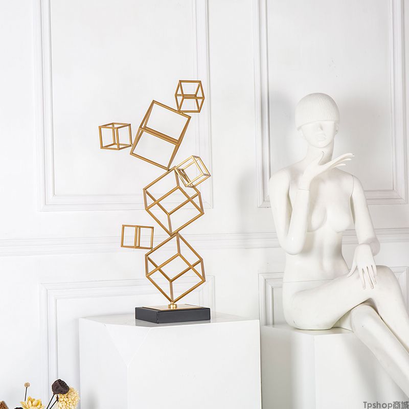 欧式样板房间酒店别墅创意家居客厅电视柜立体几何装饰品雕塑摆件