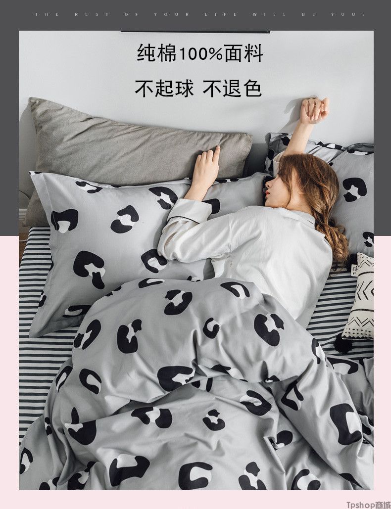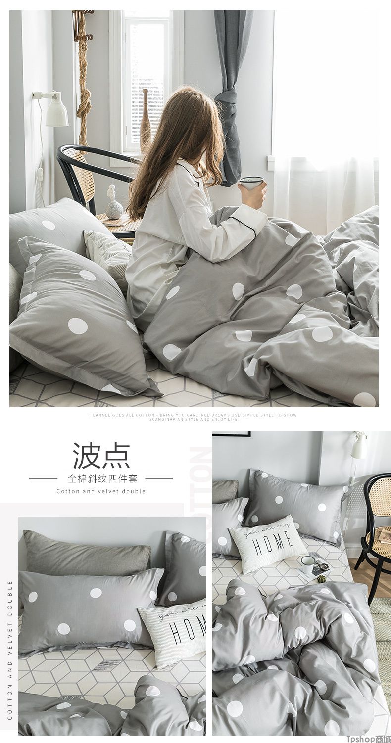 ins风简约网红全棉四件套纯棉床单被套女1.5m1.8米床上用品三件套