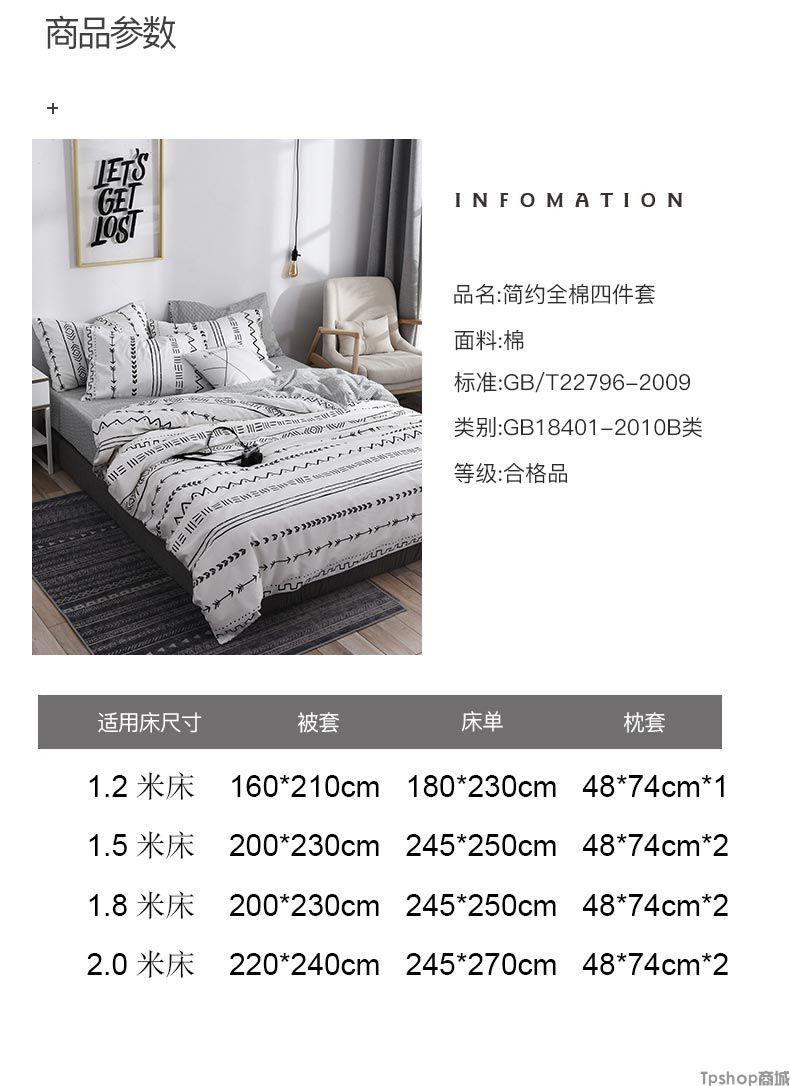 商品名称:纯棉床品四件套1.8米床笠简约床单全棉儿童1.2米三件套2.0米被套